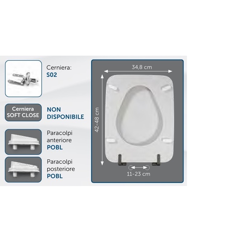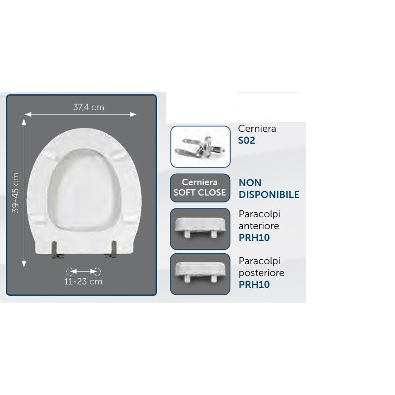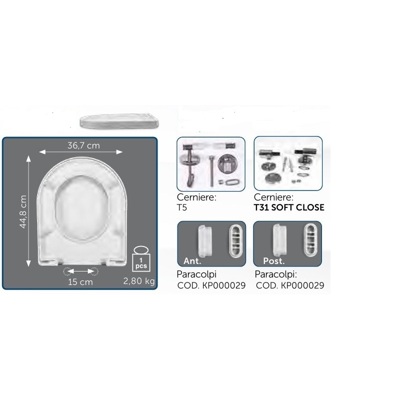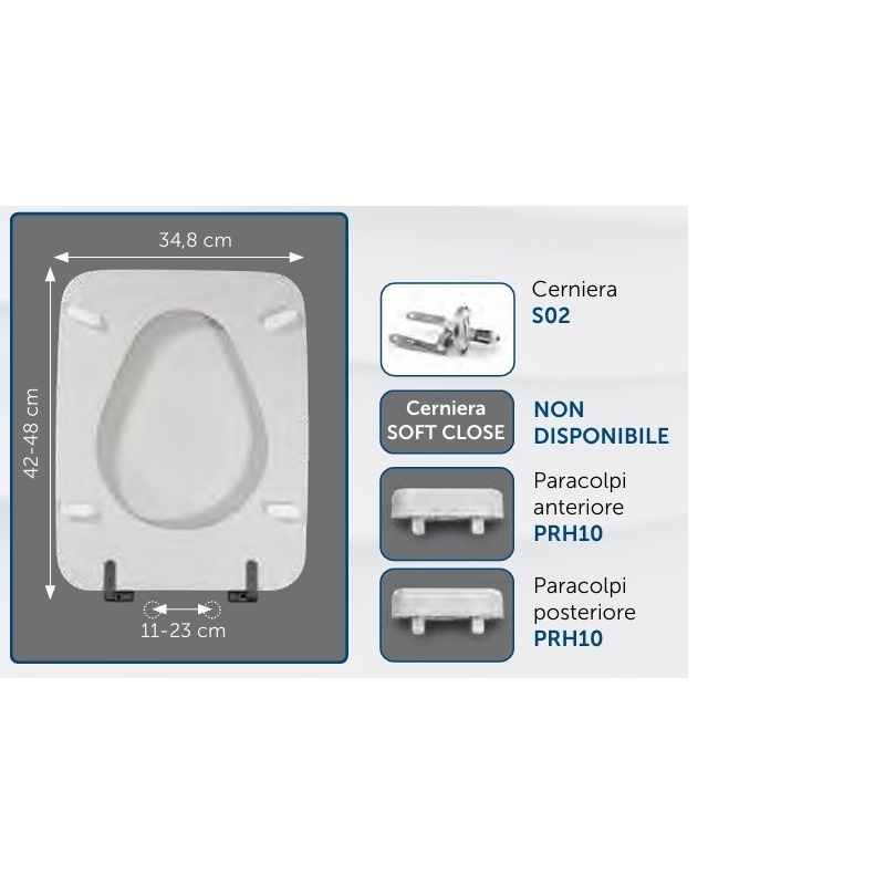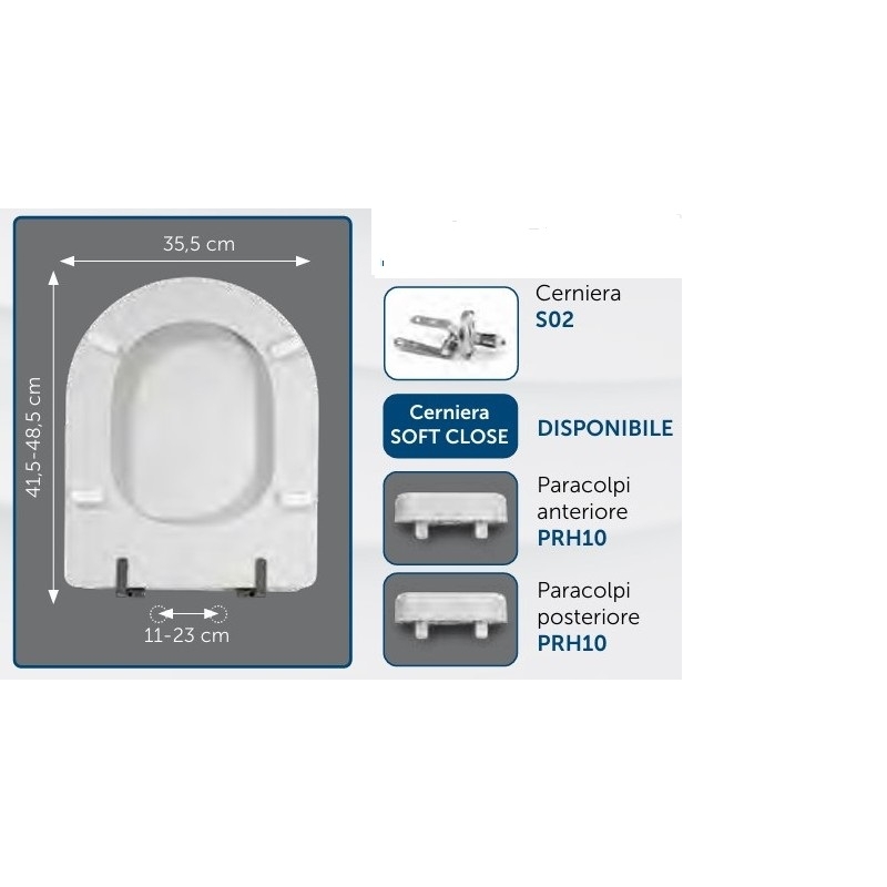 La gamma è composta da diverse serie a sagoma universale e sagome studiate specificatamente per le serie maggiormente vendute. Il punto forte per questo prodotto, là dove prevista, è la cerniera a sgancio rapido soft close.