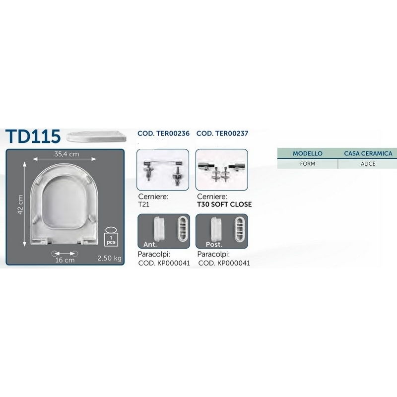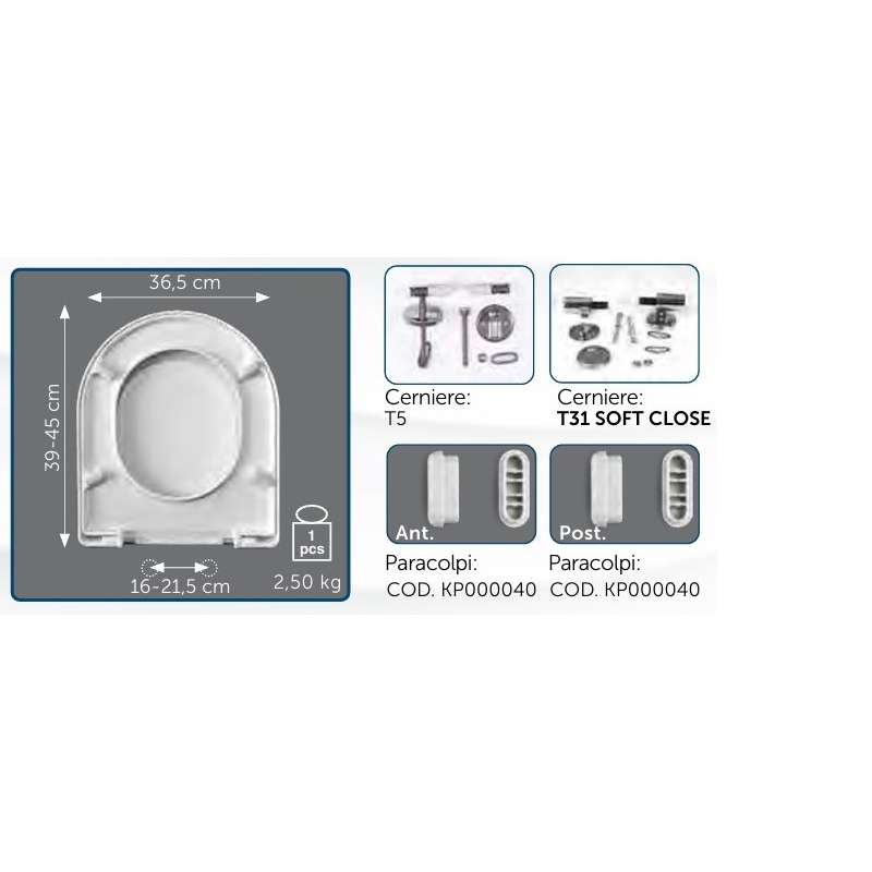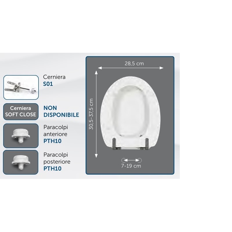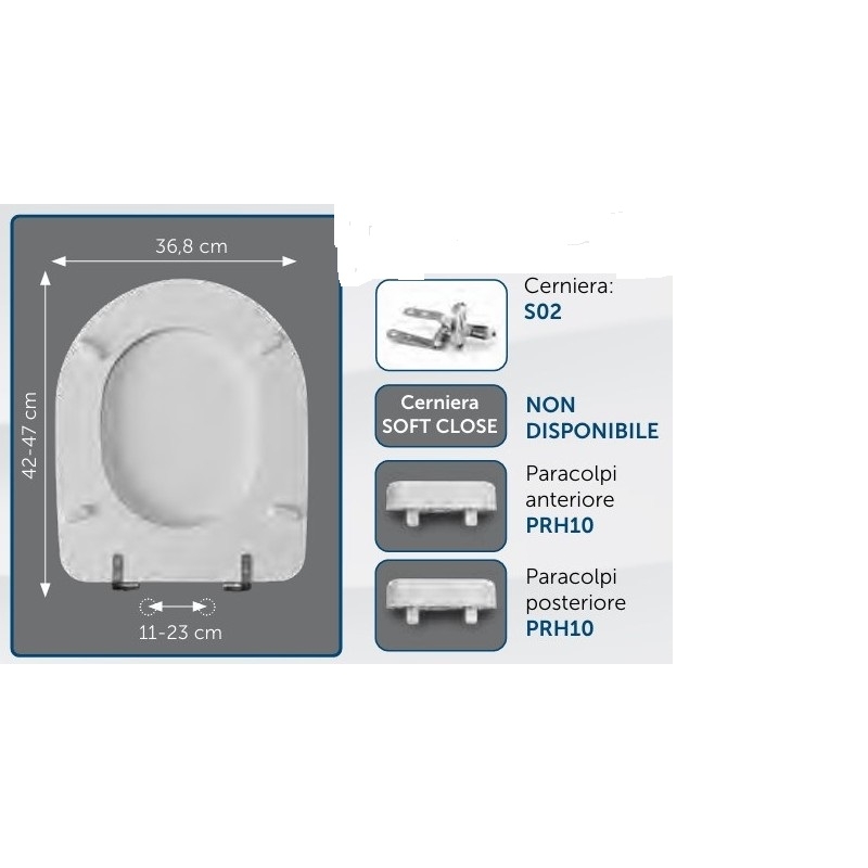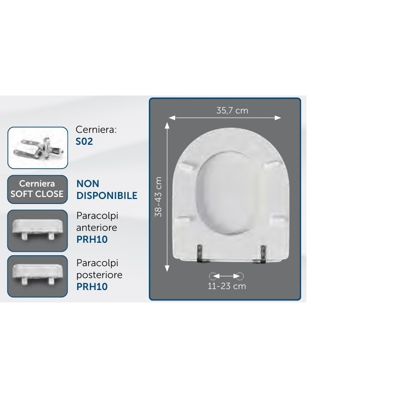 La gamma è composta da diverse serie a sagoma universale e sagome studiate specificatamente per le serie maggiormente vendute. Il punto forte per questo prodotto, là dove prevista, è la cerniera a sgancio rapido soft close.
