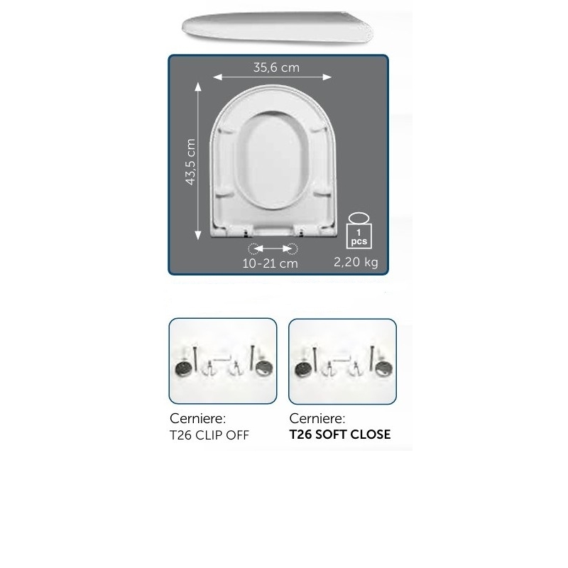Il punto forte per questo prodotto, là dove prevista, è la cerniera a sgancio rapido soft close che garantisce massima affidabilità .