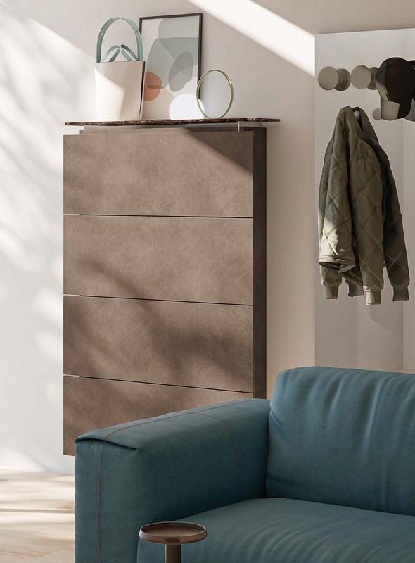 - Shoe cabinet w/4 doors H. 160 L. 105 D. 20,5 w/ Gres top * Resin Effect * ( 12 pairs of shoes )
