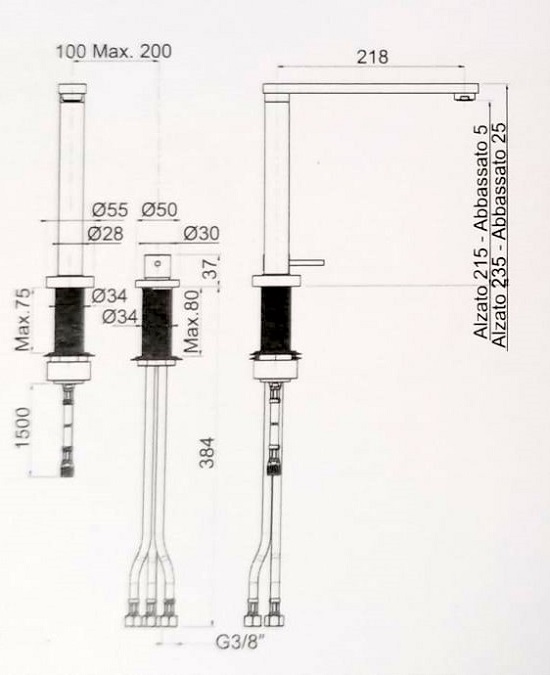 Monocomando lavello 2 fori abbattibile sotto-finestra