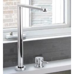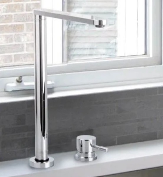 Forma minimalista, squadrata con presa separata laterale, molto comoda non intralciando lo snodo della bocca girevole. La canna alta e la forma a squadra agevola l'uso quotidiano anche con stoviglie alte. Un miscelatore cucina che ben si adatta nelle nuove tendenze .