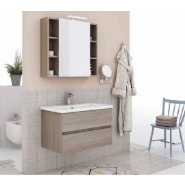 Composizione sospesa SOFT 80 , linea moderna, minimalista, grande capienza interna e finiture estremanente accurate.Disponibile in Olmo Terra ( in foto ) Bianco Larix , EUCALIPTO Grigio , ROVERE Riviera e LACCATO opaco / lucido ; con lavabo integrale in ceramica.